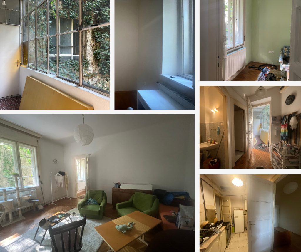 Amikor beléptem a lakásba, azonnal megragadott a télikert hangulata, a mély ablakkávák és a kert fáin átszűrődő természetes fény. A felesleges bútorok eltávolítása után – amit szerencsére megkönnyített, hogy éppen lomtalanítás volt a kerületben – felszabadult a tér, és láthatóvá vált a lakás valódi karaktere. Home staginggel és tudatos térszervezéssel sikerült kiemelni az ingatlan hangulatát. Az új enteriőr fotók már azt a fényt, térérzetet és lehetőséget mutatták meg, amely addig rejtve maradt.